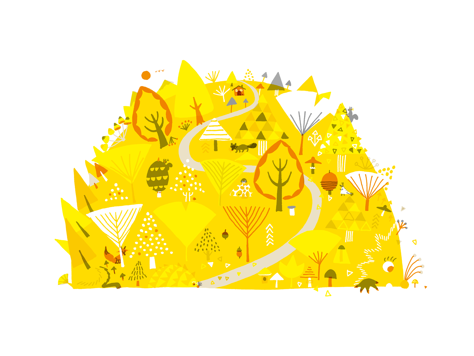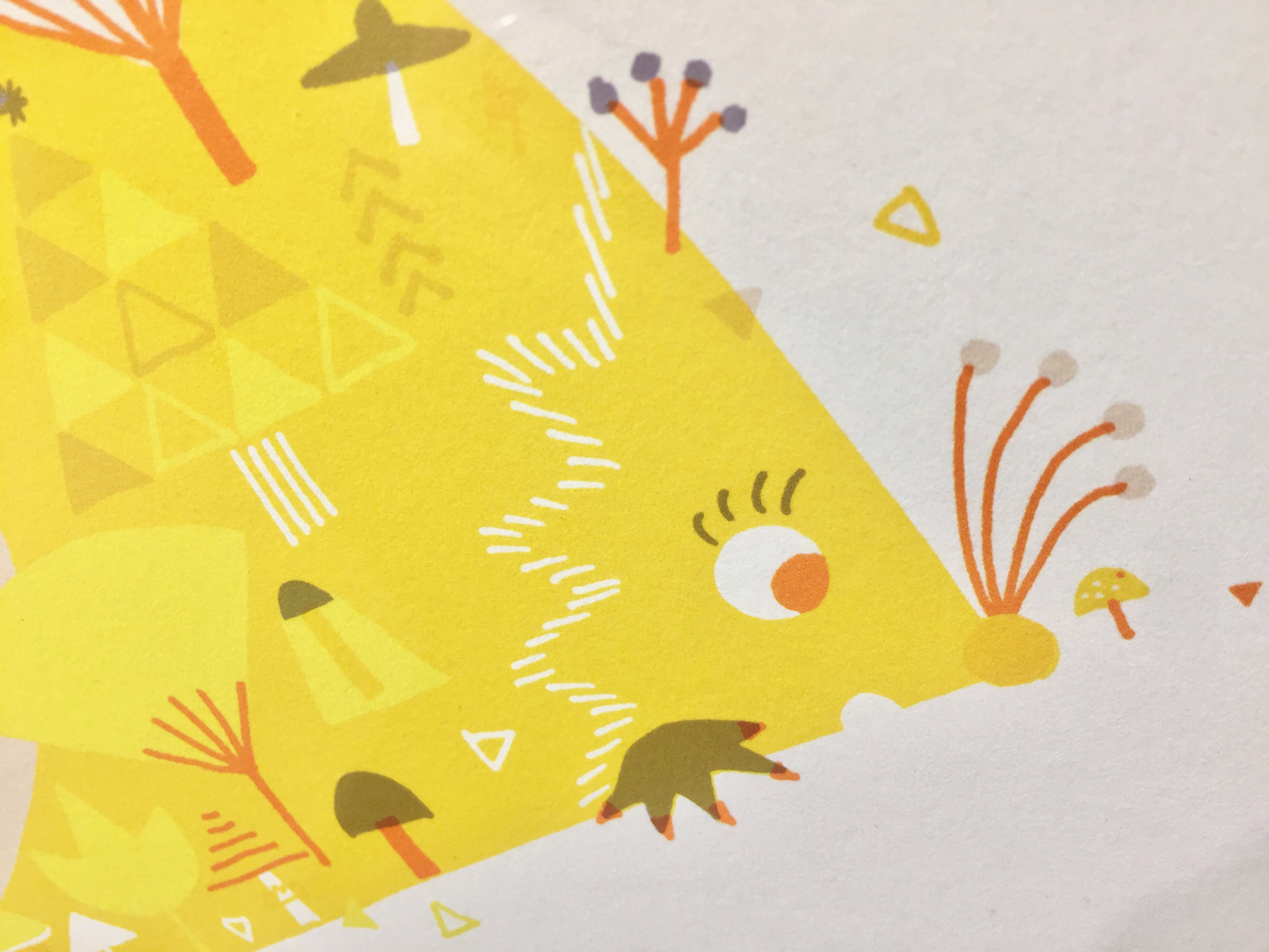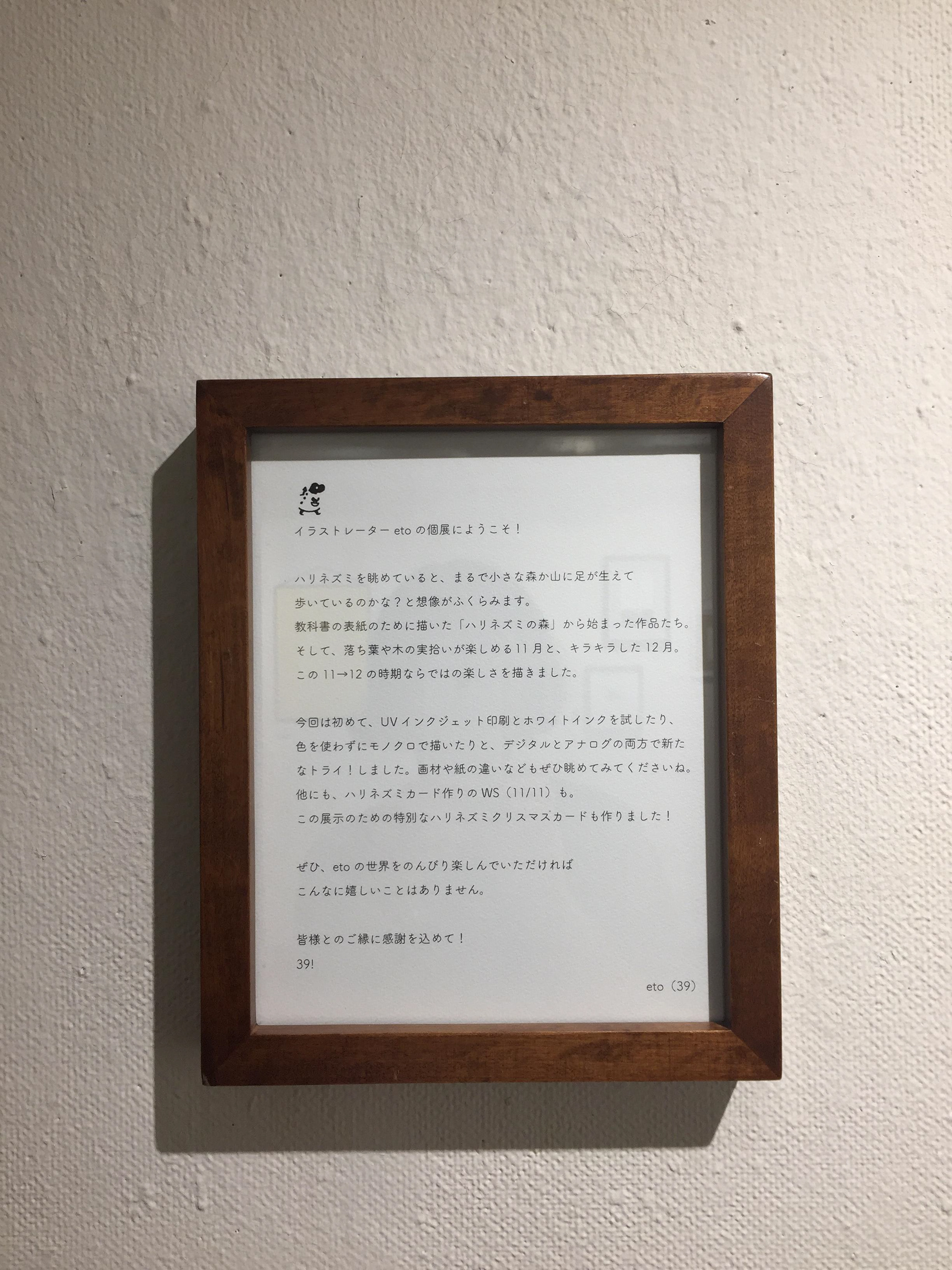 2018/11/8-13 illustrator eto's exhibition #5 フリーランスになってから12周年! 気持ち新たに、描く喜びを表現。 教科書表紙のための作品「ハリネズミ山」と11月と12月の楽しさを描きました。